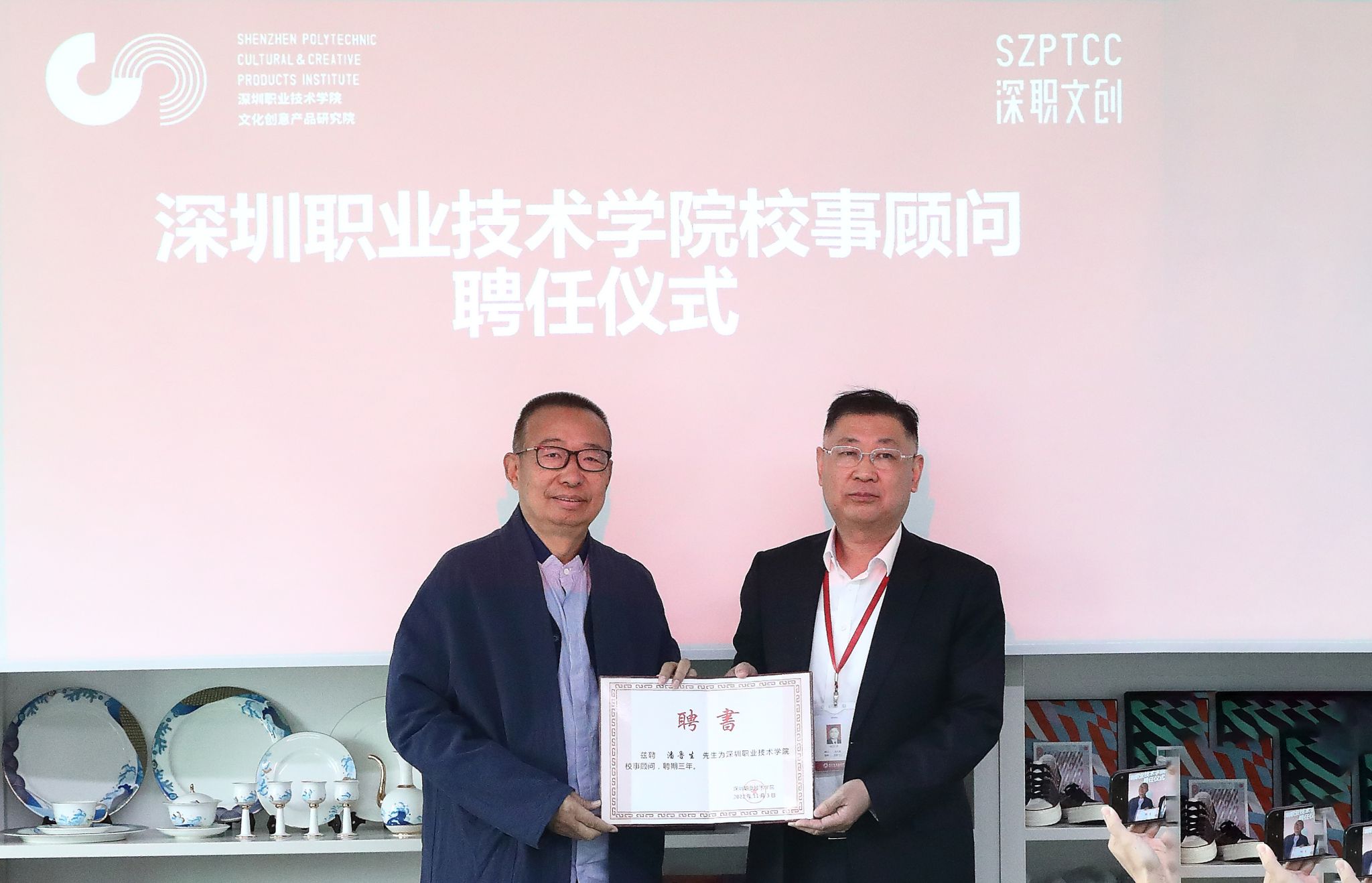 2月21日,在文创院2023年建设发展研讨会上,杨欣斌为潘鲁生颁发了校事顾问聘书。文创院相关负责人简要汇报了文创院成立以来在平台建设、国际获奖、标准制定、课题项目、发明专利和理论研究等方面的工作情况。交流研讨环节,各位专家纷纷建言献策,为文创院未来的发展传经送宝。