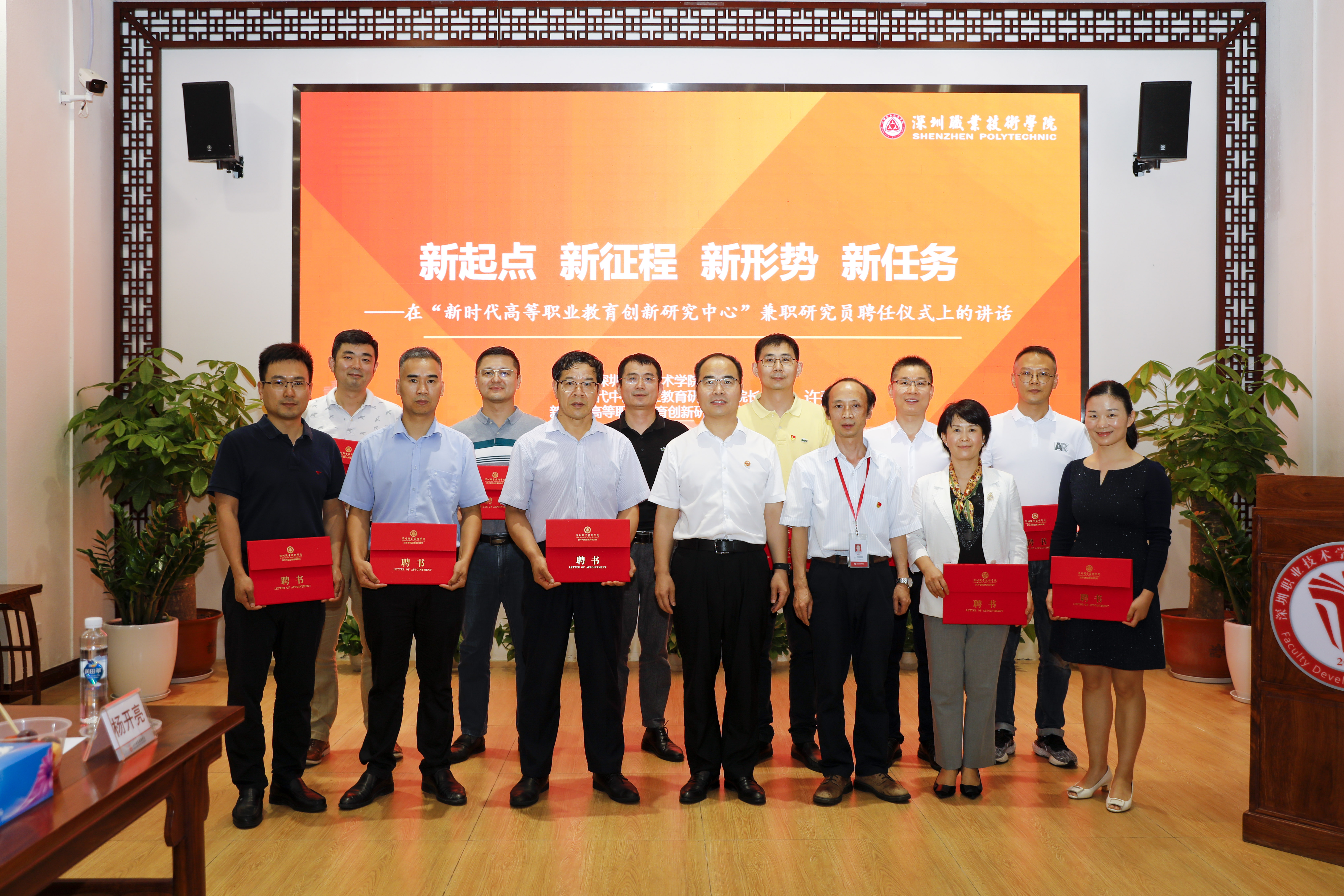 许建领为兼职研究员颁发聘书、合影留念,并以“新起点、新征程、新形势、新任务”为主题致辞。他说,学校高度重视职业教育研究高地建设,今年2月,新时代中国职业教育研究院申报的“新时代高等职业教育创新研究中心”被广东省社科联批准为广东省社会科学研究基地,为新葡的京集团职业教育研究提供了新的发展机遇,为了进一步凝聚研究力量,我们聘请校内13名研究人员作为第一批兼职研究员,希望大家发挥各自优势,凝心聚力,不断提升学校职业教育研究的水平和影响力。许建领指出,中心的五年发展目标是建成国内领先的职业教育研究高地,形成有广东特色和中国特色的理论体系与方法论体系;参与国家职业教育规则制定,发挥智囊作用,不断增强在全国的影响力;培养若干在国内知名的职业教育研究专家,建成职业教育战线认可的期刊平台和科研基地,在职业教育领域享有重要的学术声誉。力争成为高等职业教育基本理论研究的理论策源地,在高等职业教育实践创新研究方面形成“深职范式”,在高等职业教育国际比较研究方面探索中国特色。他鼓励各位研究员积极参与新时代中国职业教育研究院组织的研究课题,发表高水平研究论文,撰写高水平研究报告和政策建议书,撰写高水平学术专著,为职业教育研究贡献新理论、新理念、新知识、新技术和新方法。希望大家坚守学术追求,让学术生命熠熠生辉,在学术上有更大的作为和影响。