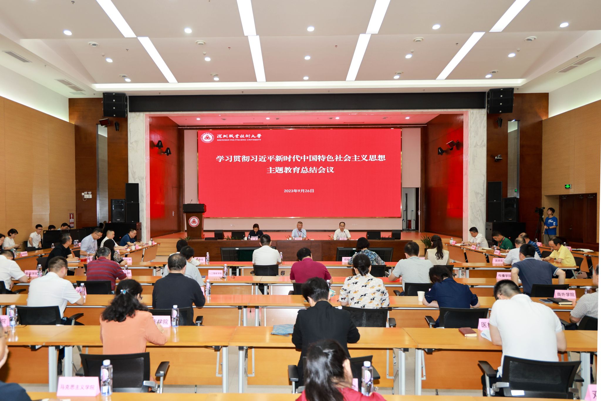 总结会在同德楼1号会议室举行。 9月26日,学校在留仙洞校区同德楼1号会议室召开学习贯彻习近平新时代中国特色社会主义思想主题教育总结会议,对学校主题教育进行回顾总结。党委书记杨欣斌出席并作总结讲话。校领导、党委委员、全体中层干部等参会,党委副书记、校长许建领主持会议。会上,党委副书记、纪委书记王慧传达学习贯彻习近平新时代中国特色社会主义思想主题教育第一批总结暨第二批部署会议精神。机电学院、经济学院结...